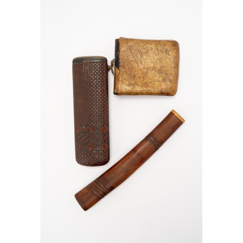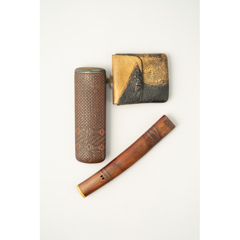 TWO JAPANESE KISERUZUTSU (PIPE CASES), AND A TABAKO-IRE (TOBACCO POUCH)