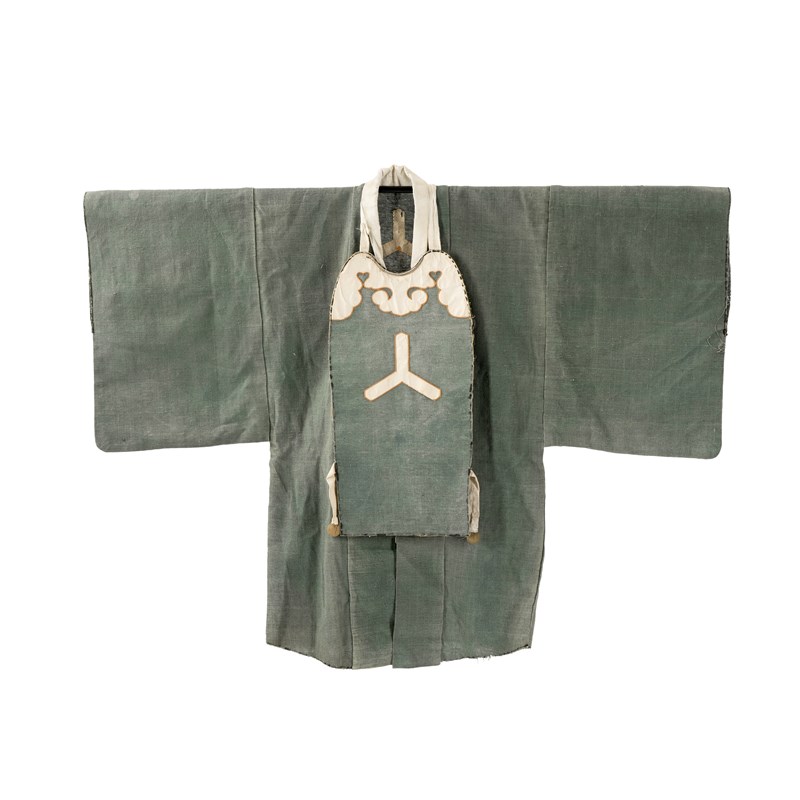 Cf. M Bincsik, The MET Museum New York, Kimono Style, Edo Traditions to Modern Design, The John C. Weber Collection, pp.78-79 no.12 for an example of a firefighter's ensemble similarly decorated in a simple manner with family crests to the back of the jacket and to the plastron. The author explains that the ensemble would not have been used to extinguish fires, but to safeguard the area and possibly give instructions to firefighters.