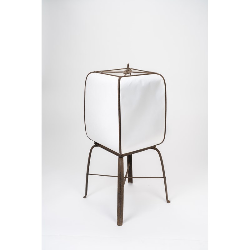 A JAPANESE IRON AND PAPER ANDON (LANTERN)