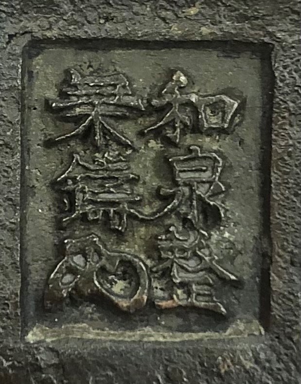 The pachyderm standing four-square and with its head slightly turned to the right, the rough texture of its thick skin realistically depicted and with a benevolent expression, signed underneath one foot, possibly Izumi, together with a wood stand, 38cm. (2)