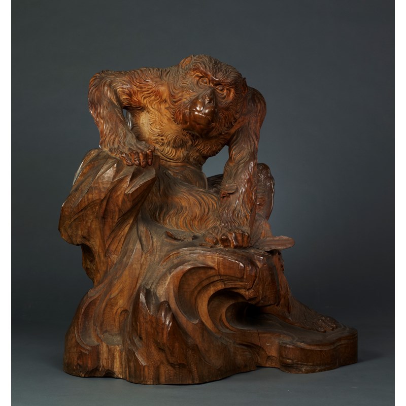This bronze is modelled after the famous wood carving entitled 'Aged Monkey' by Buddhist sculptor Takamura Koun. The original is over a meter tall and was displayed at Chicago's World Fair in 1893, where it won the Outstanding Performance Award. It is today on display at Tokyo National Museum.