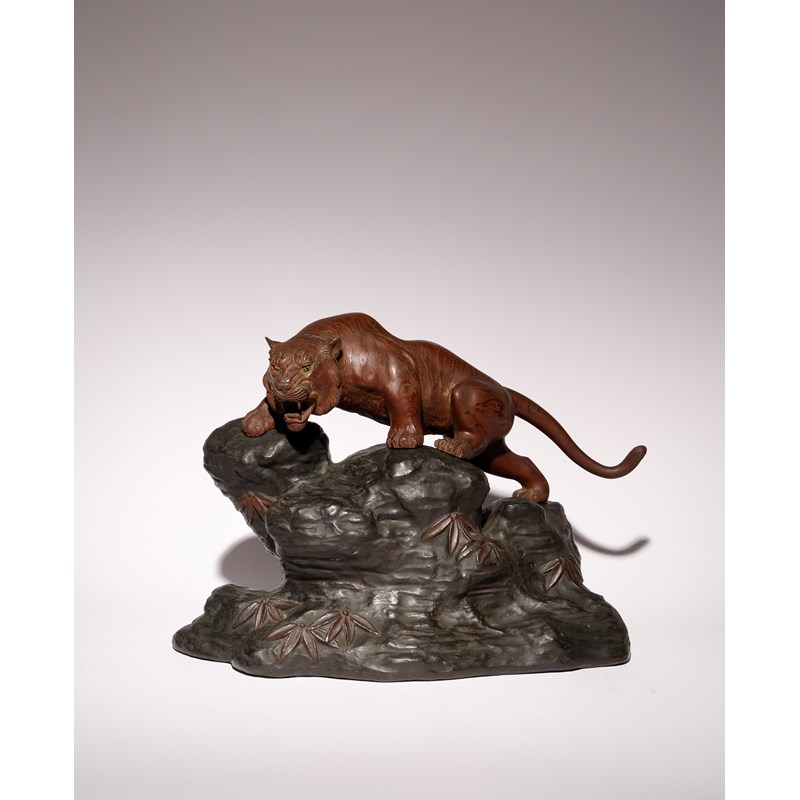 A JAPANESE BRONZE OKIMONO OF A TIGER