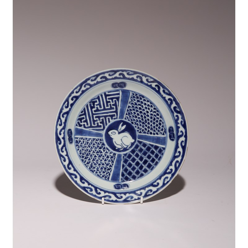 A CHINESE BLUE AND WHITE SHONZUI-STYLE 'HARE' DISH FOR THE JAPANESE MARKET