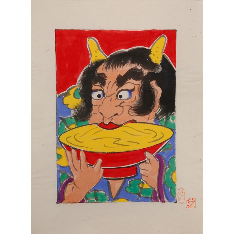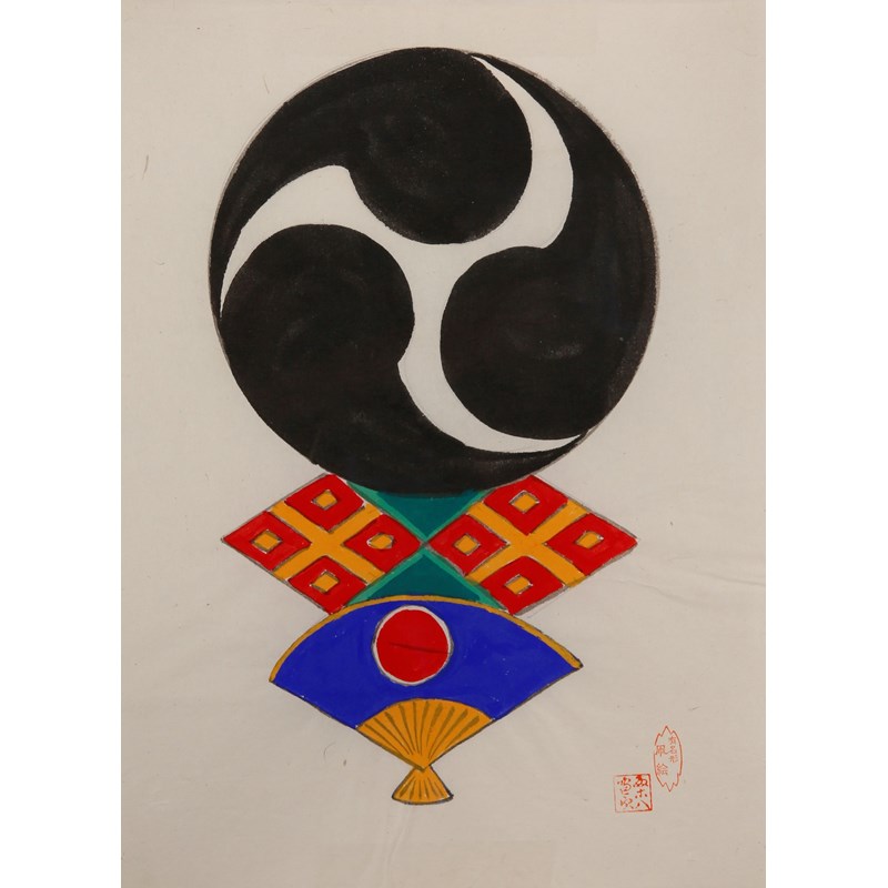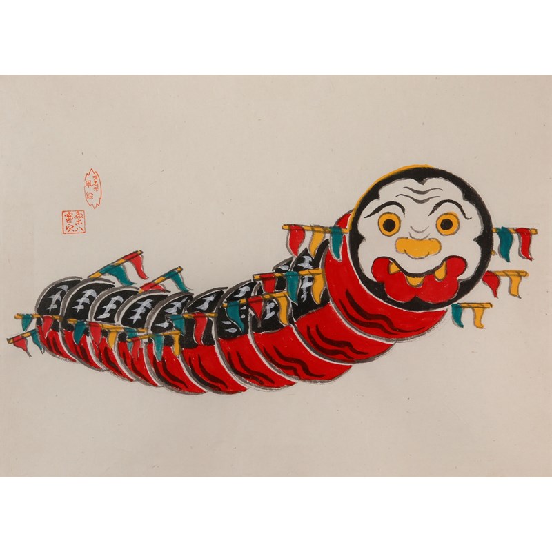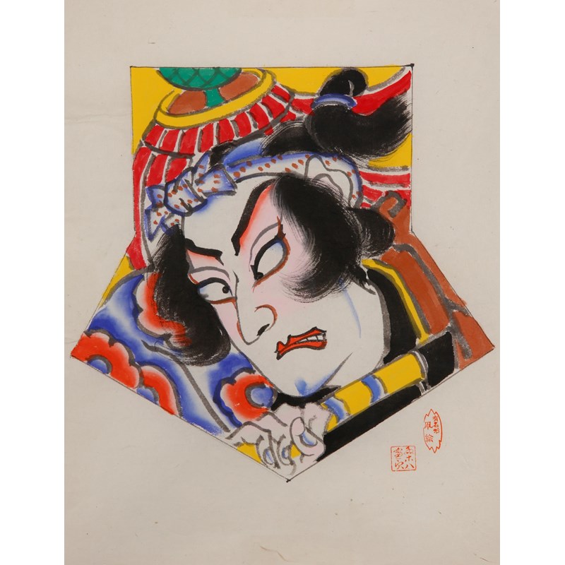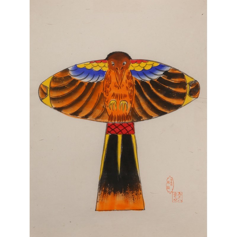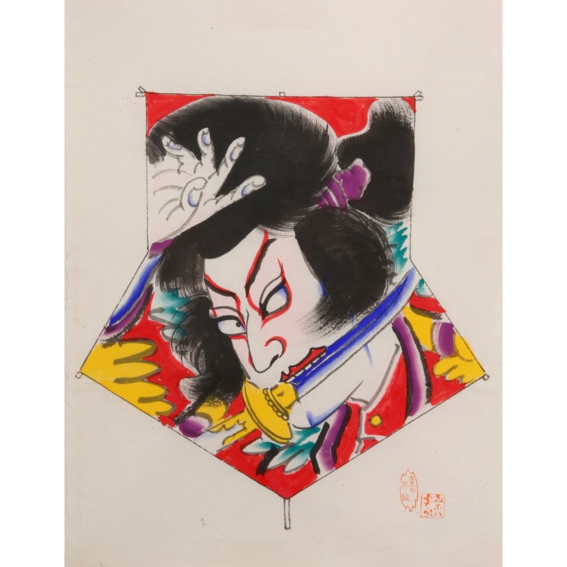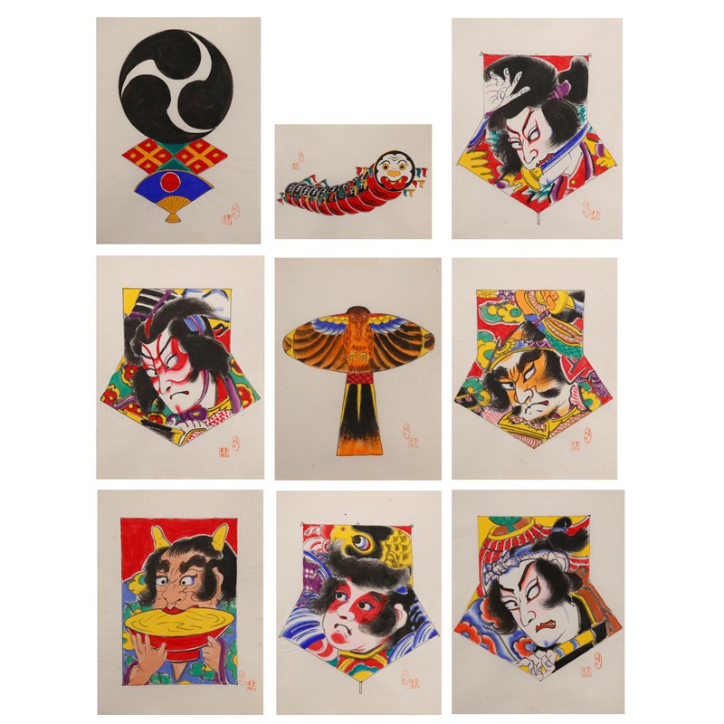 Nine Japanese paintings, all designs for traditional paper kites, from an edition of 100 hand-painted albums published by Unida, Tokyo, variously depicting animals, auspicious symbols and legendary figures, all in box frames and glazed, all approx. 44cm x 33cm. (9)