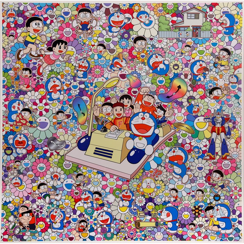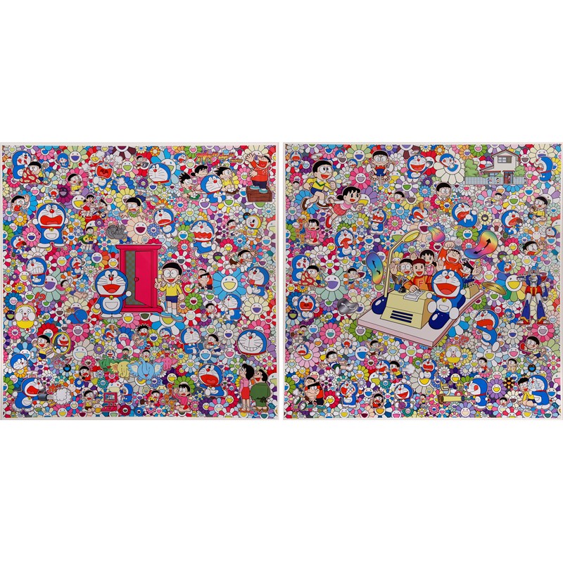 ', both depicting Doraemon and his friends amongst a multitude of flowers, one numbered 783/1000 and the other 794/1000, published by Kaikai Kiki Co., Ltd., Tokyo, signed Murakami in silver ink, framed and glazed, both approx. 71.5cm x 71.5cm. (2)