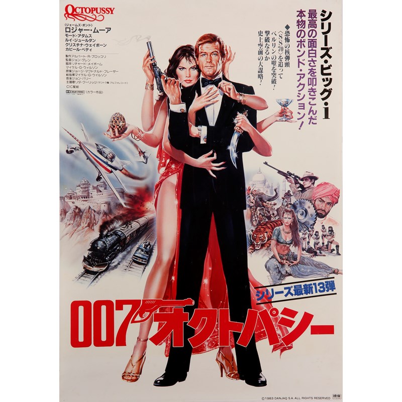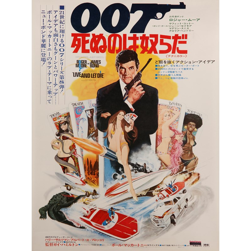 All three featuring Roger Moore, one of Live and Let Die (1973), the second of The Man with the Golden Gun (1974) and the third of Octopussy (1983), all approx. 72.5cm x 51.5cm. (3)