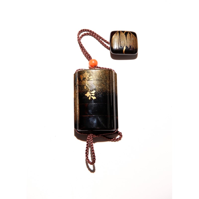 A JAPANESE GOLD AND BLACK LACQUER FOUR-CASE INRO