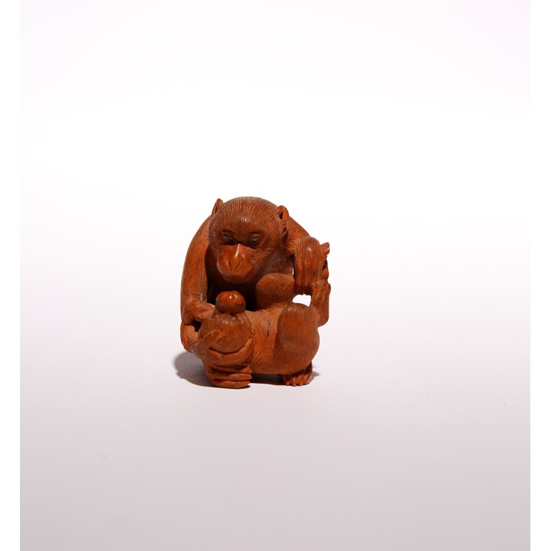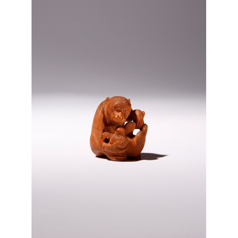 A JAPANESE WOOD NETSUKE OF MONKEYS