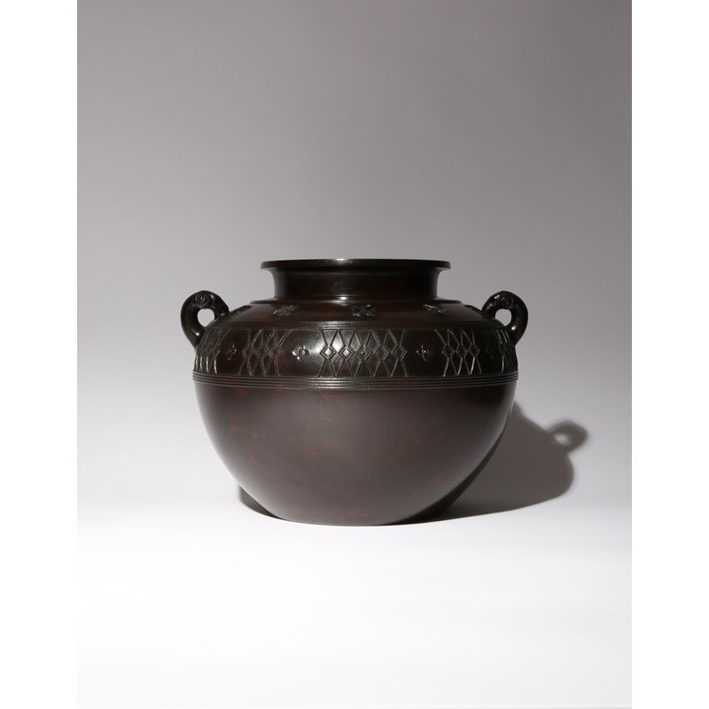 A JAPANESE DOUBLE-HANDLED BRONZE VASE BY SUMIHIRO