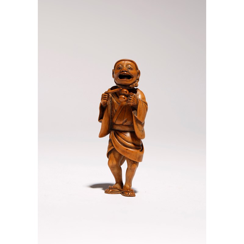 Cf. H L Joly, The Catalogue of the H. Seymour Trower Collection of Japanese Art, no.18, where this very piece is illustrated. The author describes it as Aodarakio, the beggar singing foolish songs in the streets.