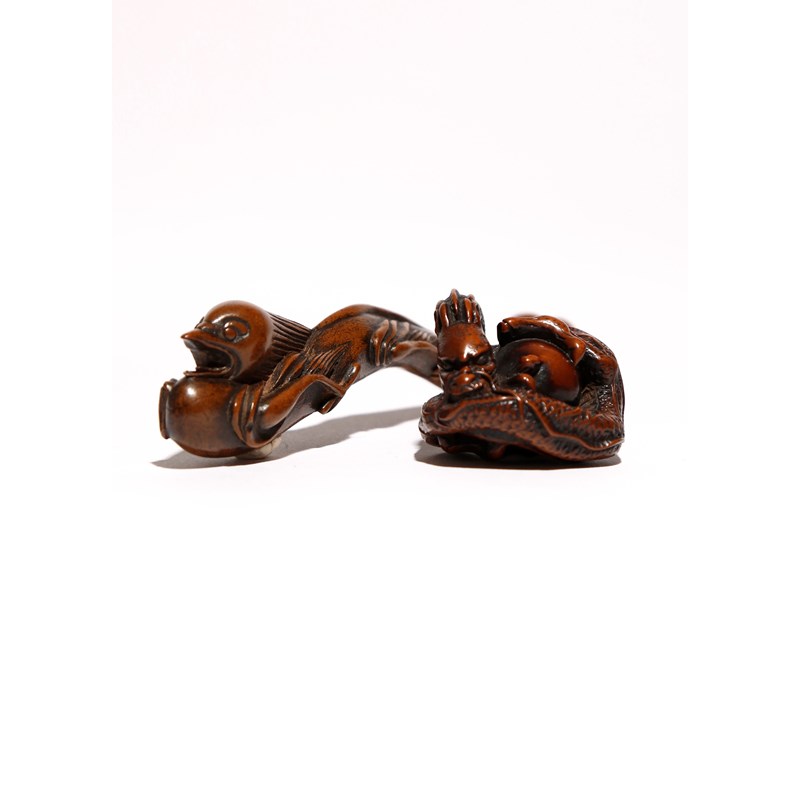 TWO JAPANESE WOOD NETSUKE OF DRAGONS