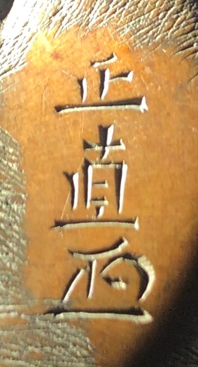 Recumbant and with its head turned towards its back, the hair finely rendered to suggest a piebald colouring, its eyes inlaid with minute beads, signed Masanao with kao underneath for Masanao of Yamada (Ise Province), 5cm.