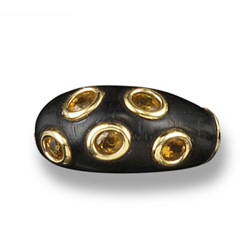 A French unusual wood and gold ring, set with five oval shaped yellow stones in yellow gold mounts. French control mark and obscure maker's lozenge. Size L.