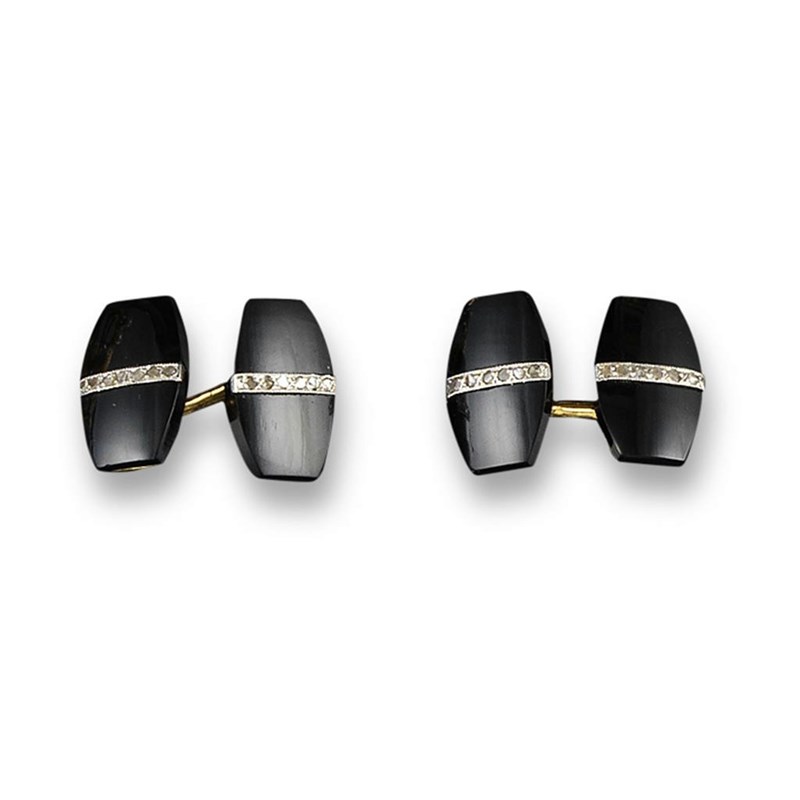 A pair of diamond set black onyx and gold cufflinks, French control marks.