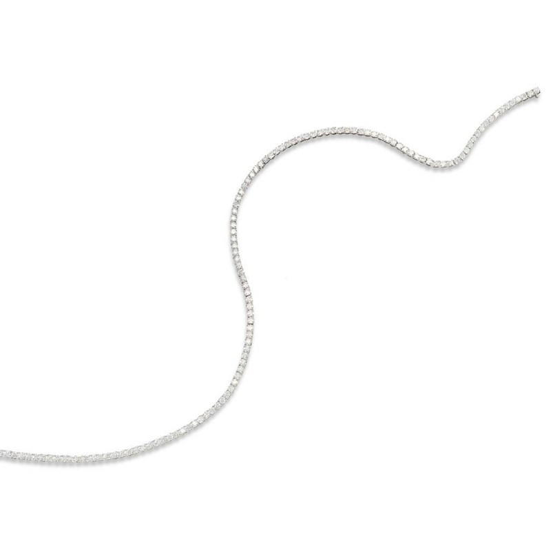 A diamond line necklace, the round brilliant cut diamonds are set in white gold and weigh approximately 10.50cts in total. 41cm.