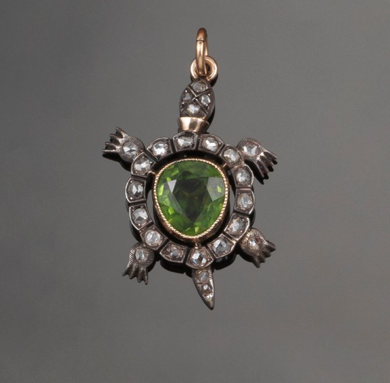 A 19th Century demantoid garnet and diamond set turtle brooch