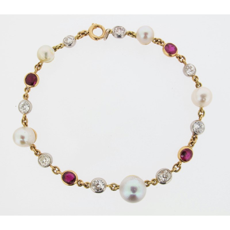 A pearl diamond and ruby bracelet