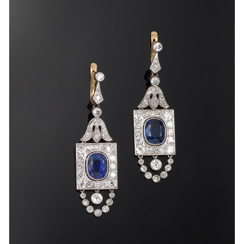 A pair of Belle Epoque sapphire and diamond drop earrings
