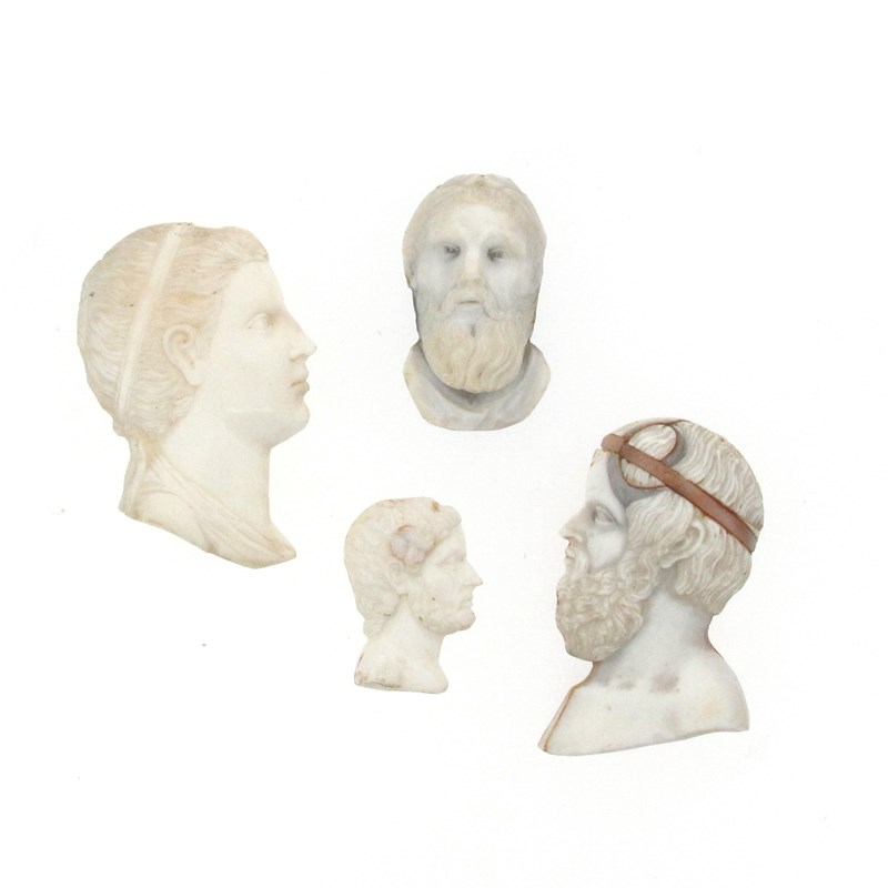 Four carved shell cameo profiles