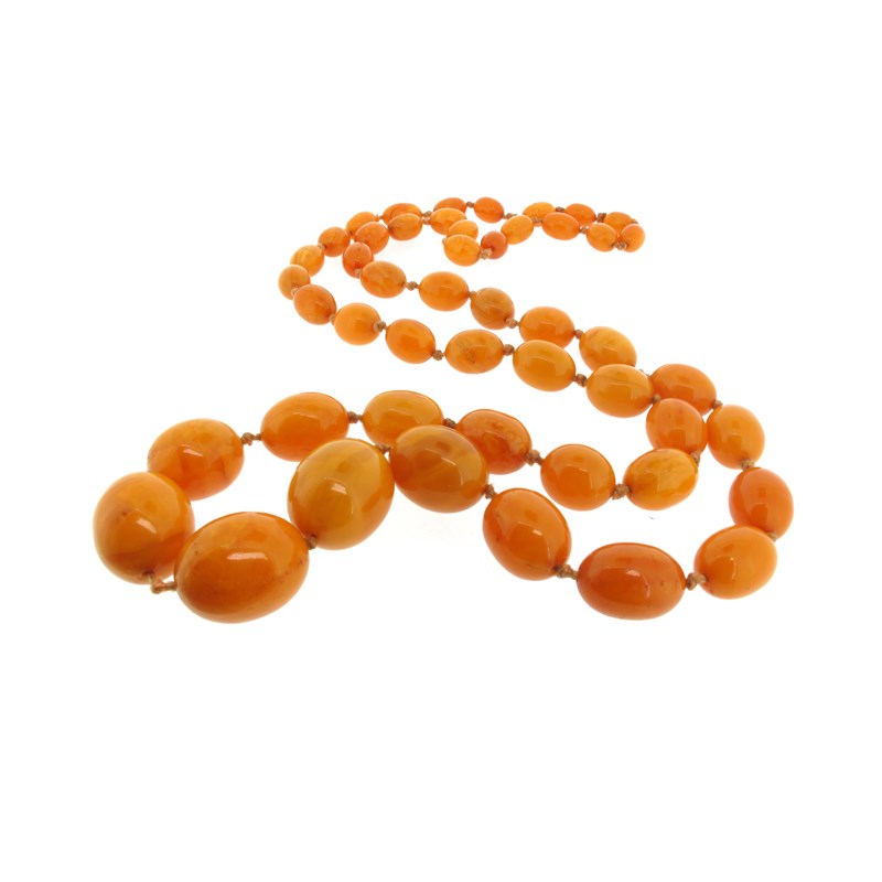 A graduated amber bead necklace, the forty-nine beads graduate from 10.6-21mm, 135g
