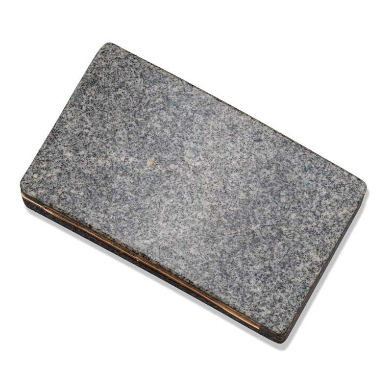 An early 19th century rectangular hardstone snuffbox, gold mounts and of convex form, obscure marks but possibly Austrian, 8.5cm long