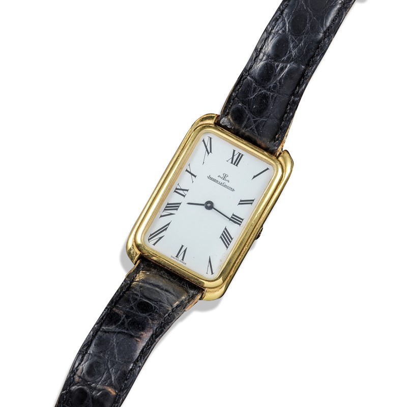 JAEGER LECOULTRE - A yellow gold rectangular wristwatch