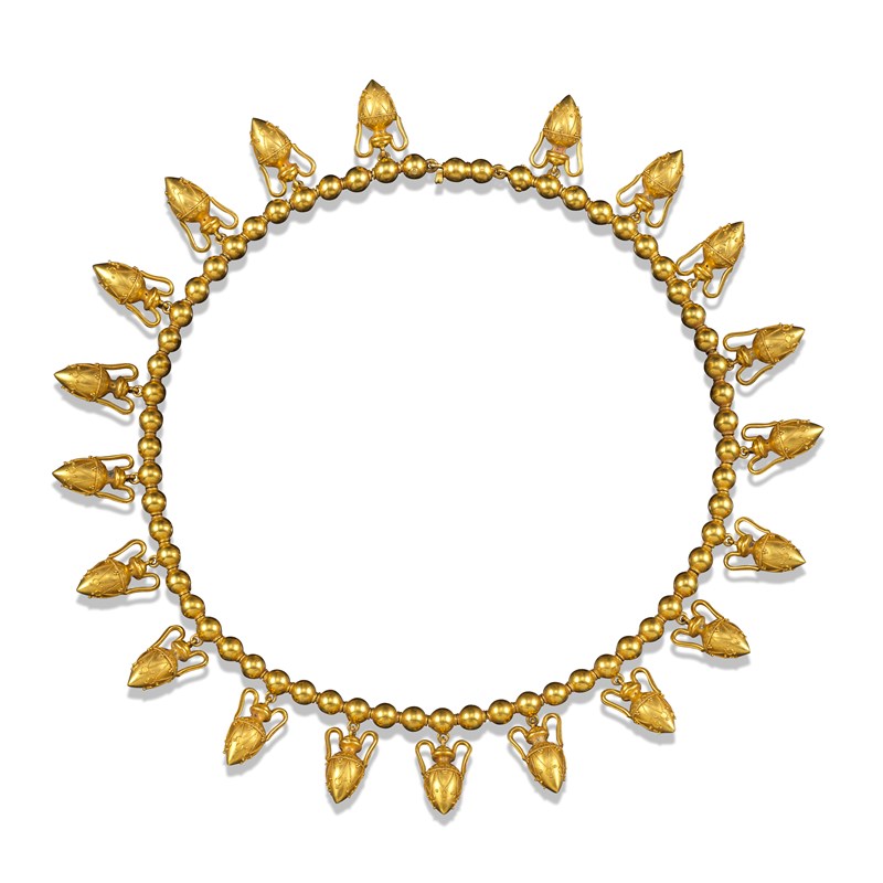 A late 19th century gold Amphorae fringe necklace