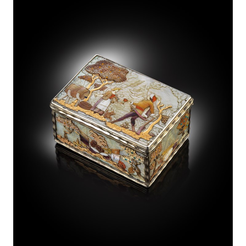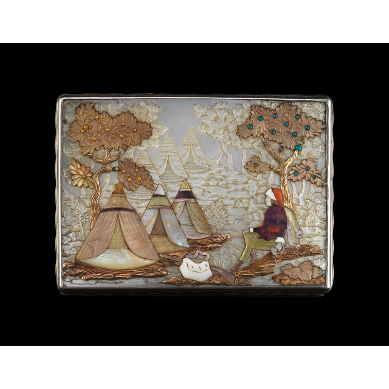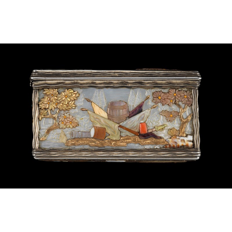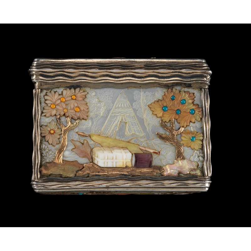 A box with similar military camp iconography was sold by the late Baron Maximilien de Goldschmidt-Rothschild, Sotheby's Monaco, 29th November 1975, ex lot 136.