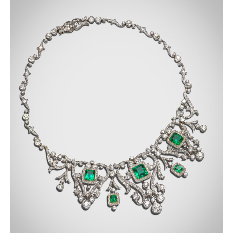 An Edwardian emerald and diamond necklace