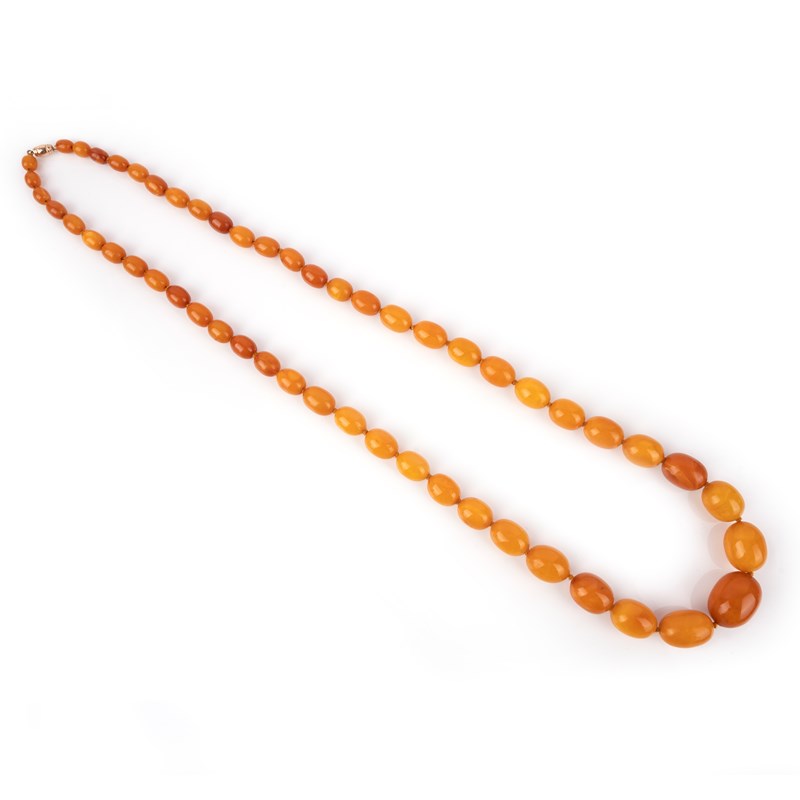 An amber bead necklace, composed of graduated oval amber beads, the largest measuring 2.7 x 2.0 x 2.0cm, length 86cm, gross weight 81 grams