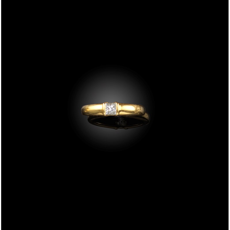 Van Cleef and Arpels, a diamond ring, the gold band tension-set with a princess-cut diamond, size L, signed VCA, numbered B5943A16, partial French assay mark, French maker's mark SM, stamped 750, British import hallmark for 18ct gold, case stamped Van Cleef & Arpels