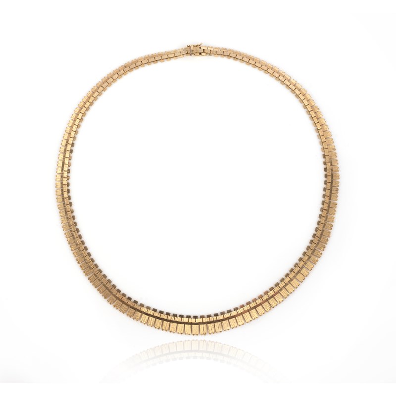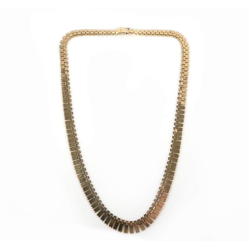 A gold fringe necklace, of textured brick-link design, stamped 585, length 46cm, 37g