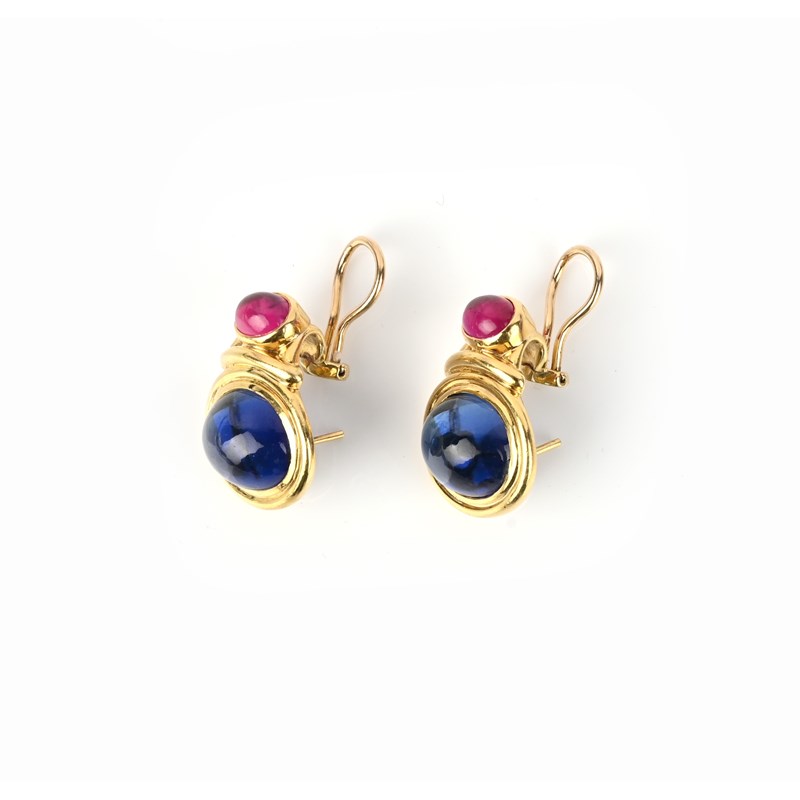 A pair of synthetic gem-set gold earrings