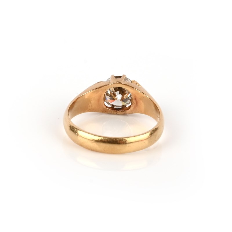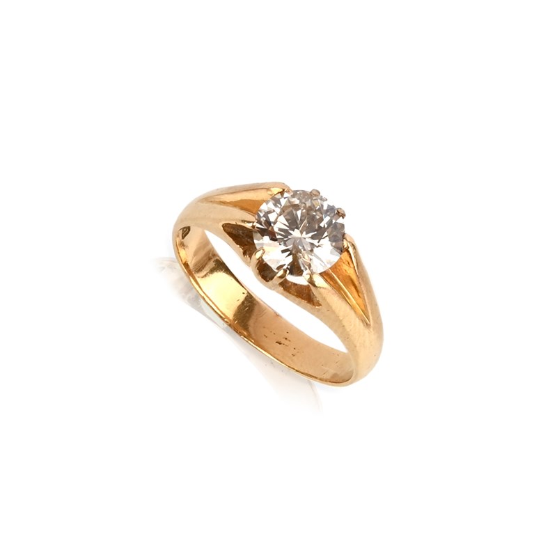 A diamond solitaire ring, the circular-cut diamond set within yellow gold mount, size S