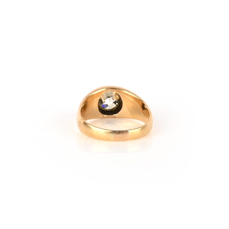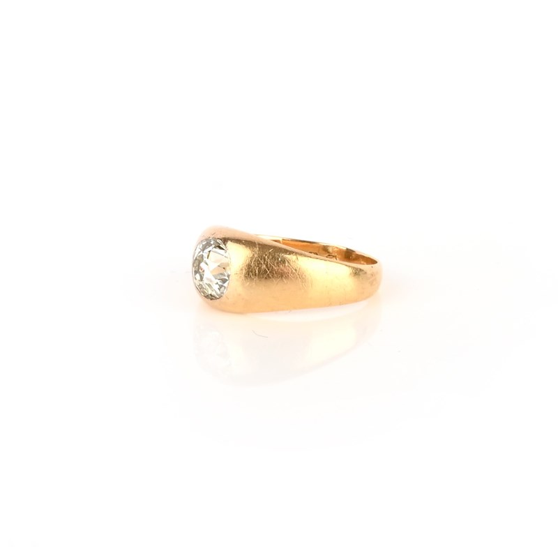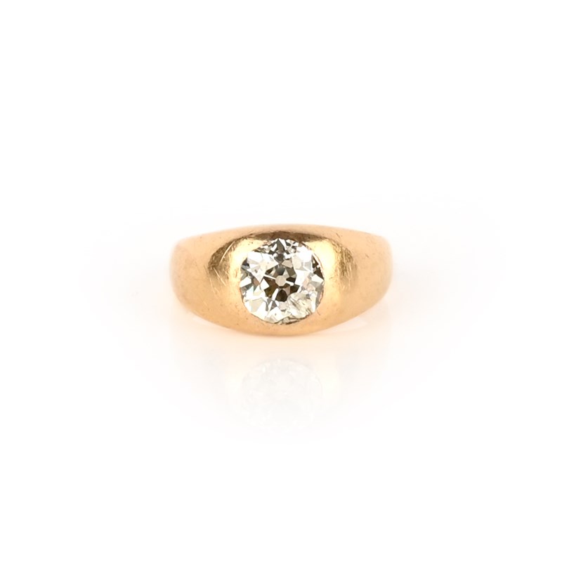 A Victorian diamond solitaire ring, the cushion-shaped diamond weighs approximately 1.90cts, rubover-set in 18ct yellow gold, Sheffield hallmarks for 1885, size S
