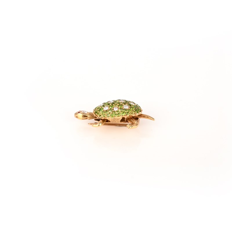 A demantoid garnet tortoise brooch