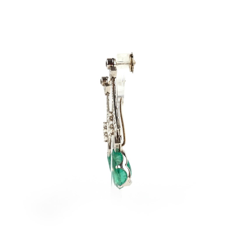 A pair of emerald and diamond earrings