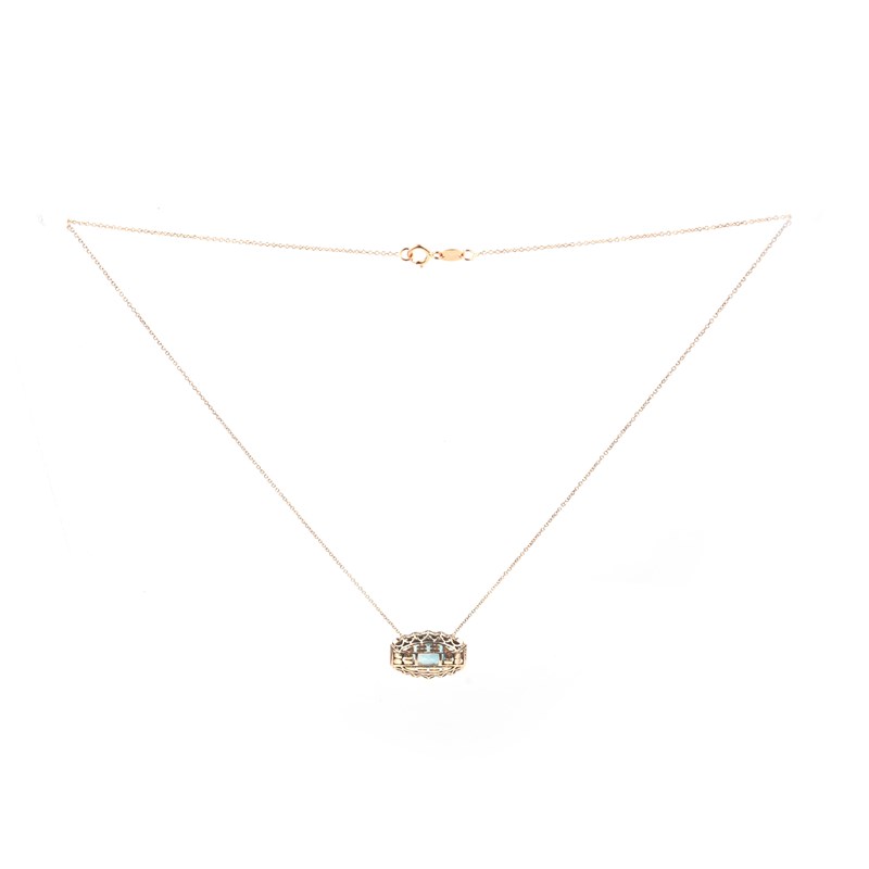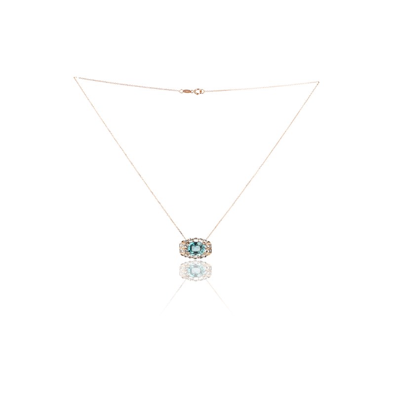 A zircon and white sapphire pendant, claw-set with a cushion-shaped blue zircon, to a mount set with circular-cut white sapphires, to a fine link chain, mounted in gold, length 40.5cm, stamped 750