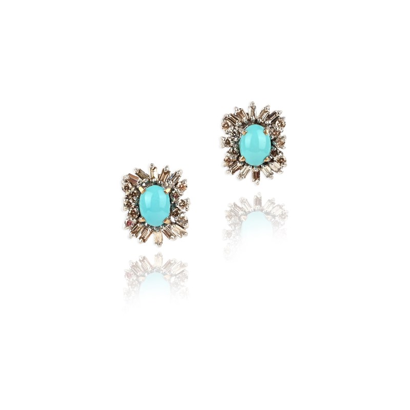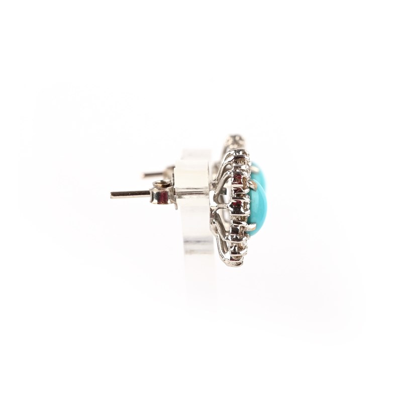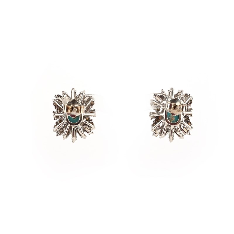 A pair of turquoise and diamond earrings