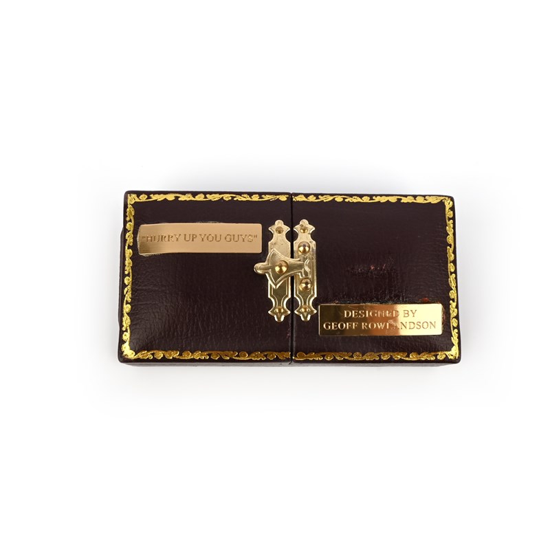 Geoff Rowlandson, a cultured pearl and diamond brooch, 'Keep Up, You Guys', set with three graduated baroque cultured pearls in the form of a mother duck with two ducklings following behind, their eyes inset with brilliant-cut diamonds, the water's surface in white gold accented with brilliant-cut diamonds, length 8cm, inscribed 'Keep up you guys', signed Geoff Rowlandson, British hallmarks for 18ct gold, fitted case, one diamond deficient