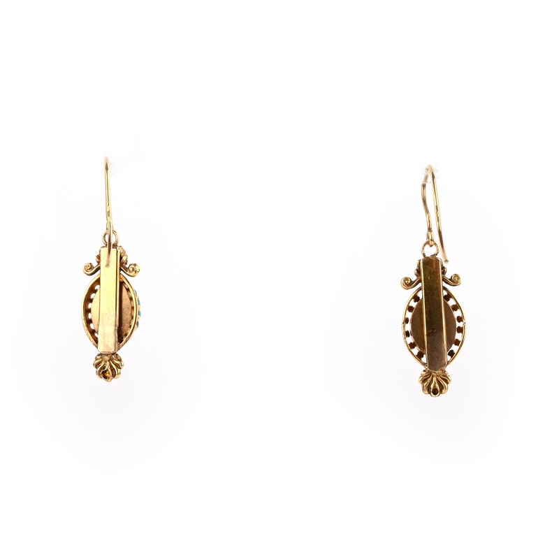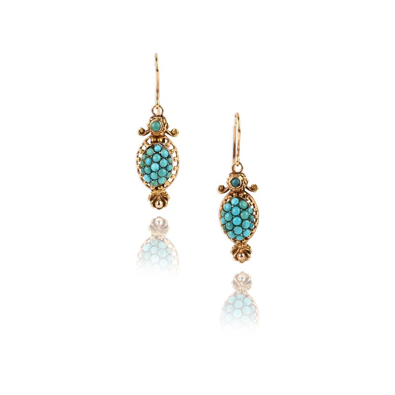 A pair of Victorian turquoise drop earrings, set in yellow gold, 3cm high including hooks