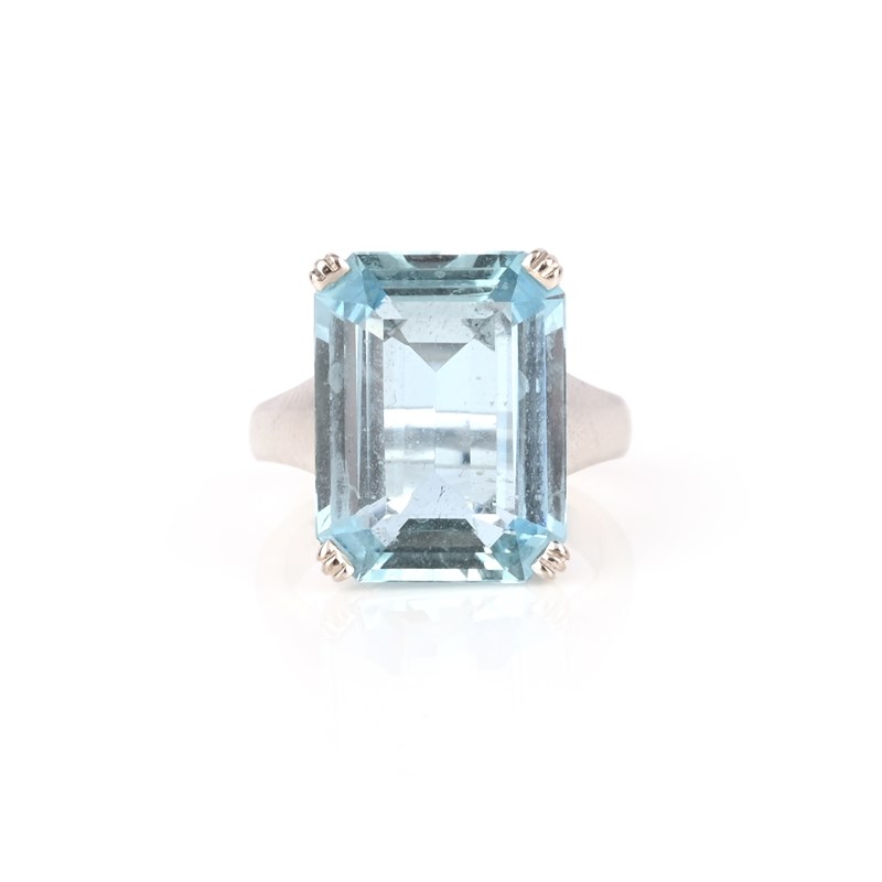 An aquamarine solitaire ring