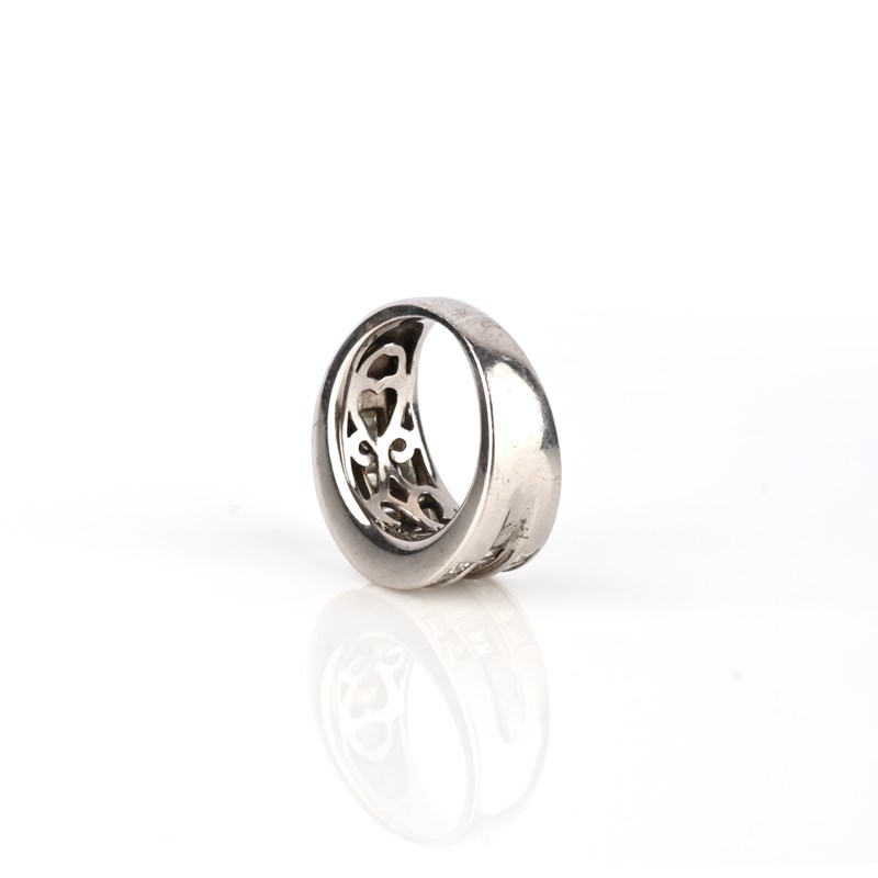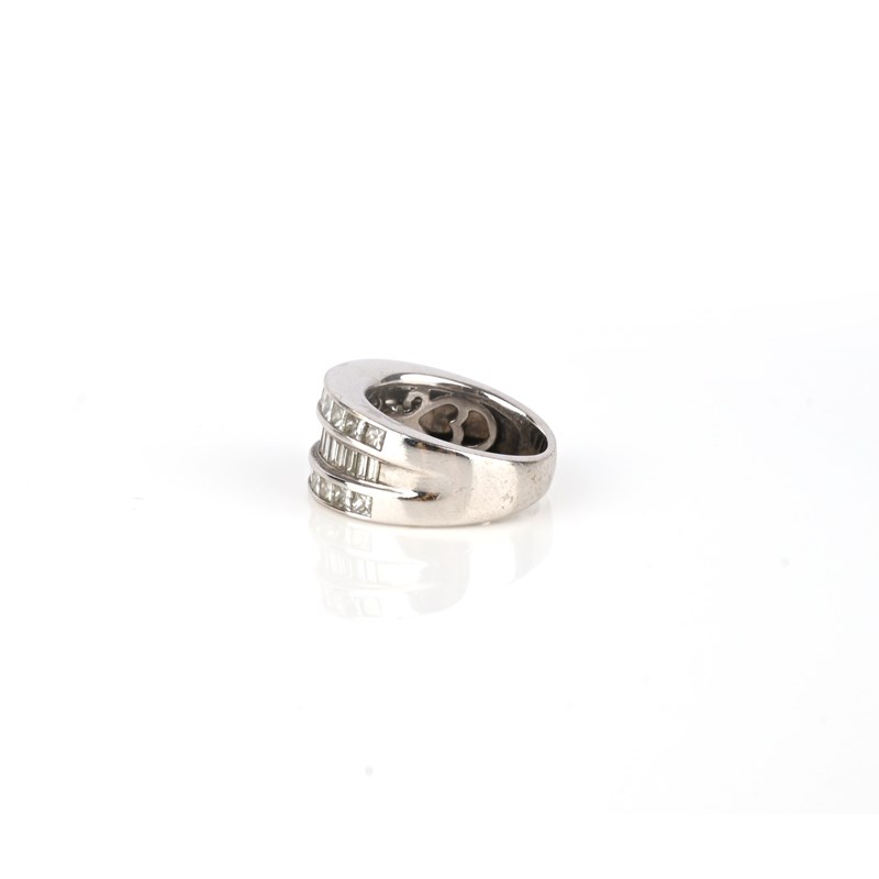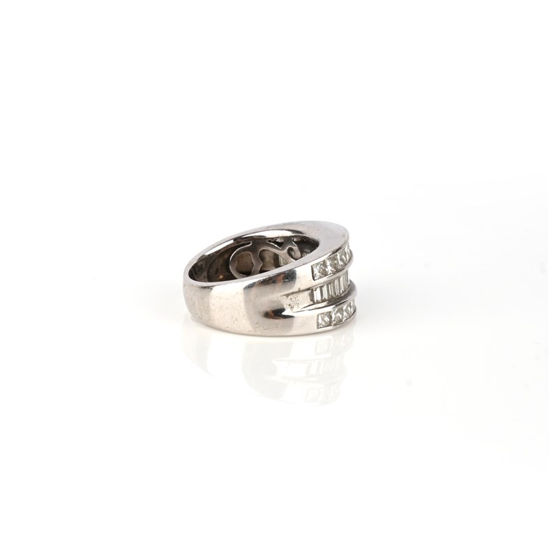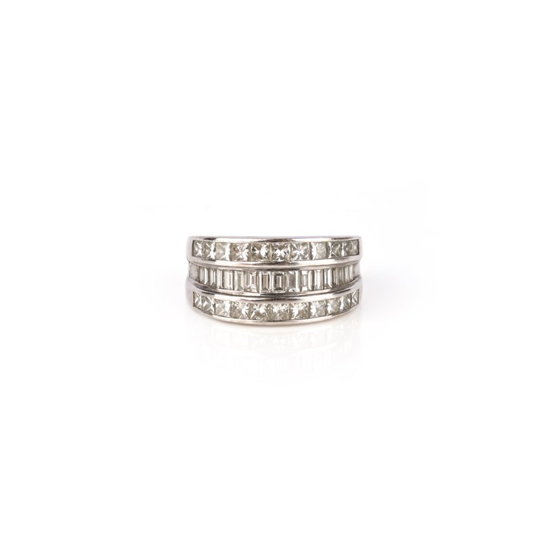 A three row diamond half eternity ring, set with princess-cut and baguette-shaped diamonds in 18ct white gold weighing an approximate total of 3.30 carats, rubbed London hallmarks for 2001, size M