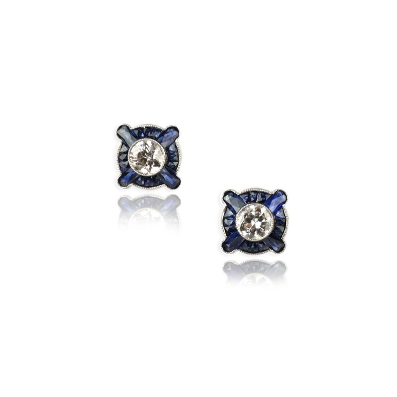 A pair of sapphire and diamond cluster earrings, the round brilliant-cut diamonds set within a quatrefoil sapphire surround in white gold, post fittings, 9mm high