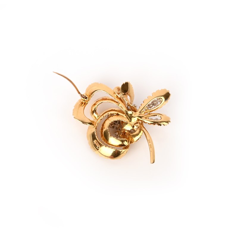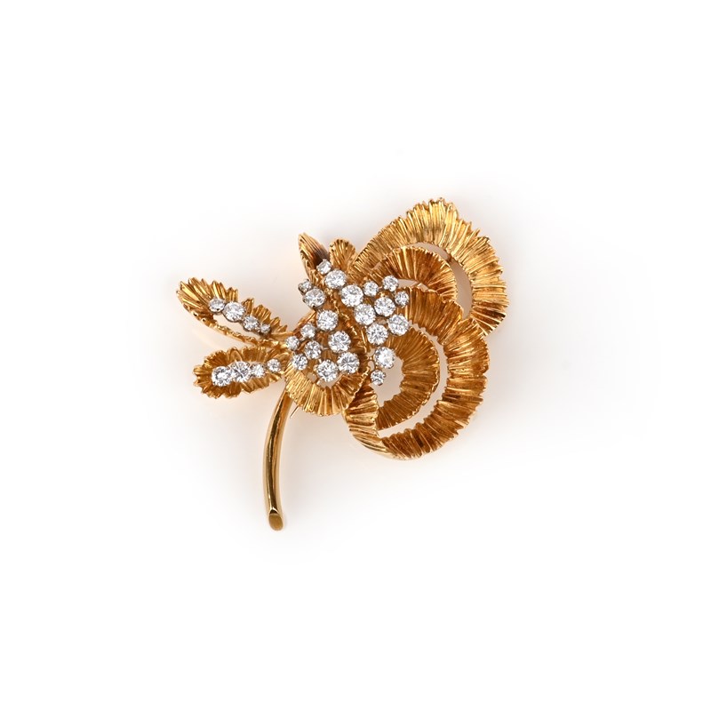 A diamond-set gold flower brooch by Kutchinsky