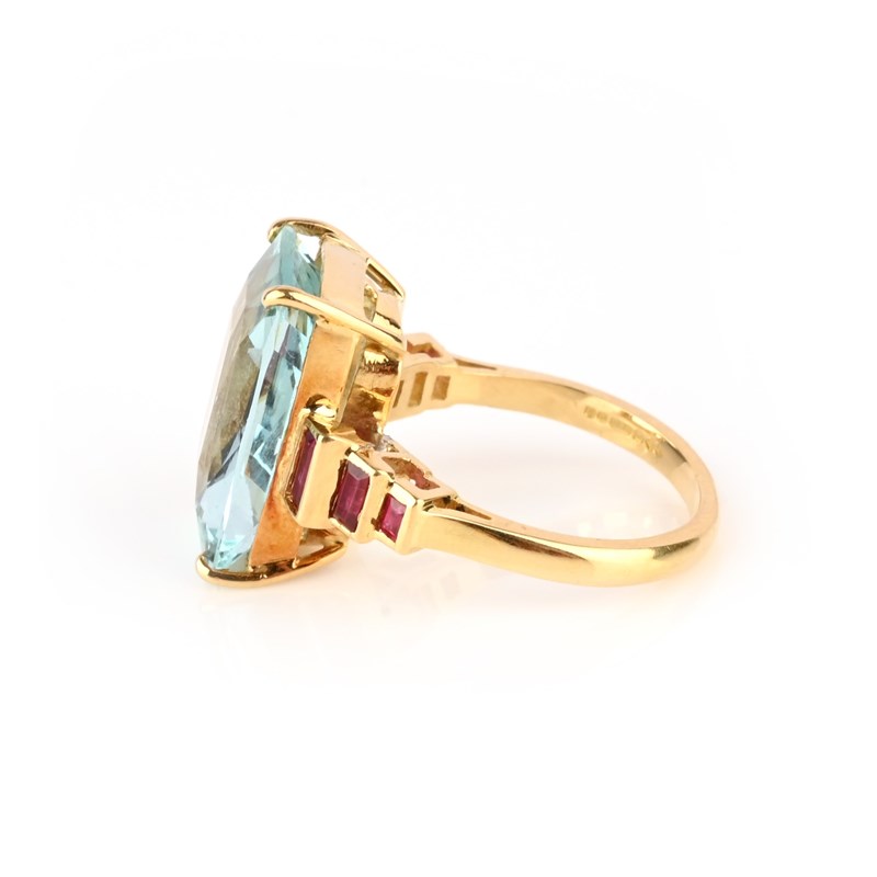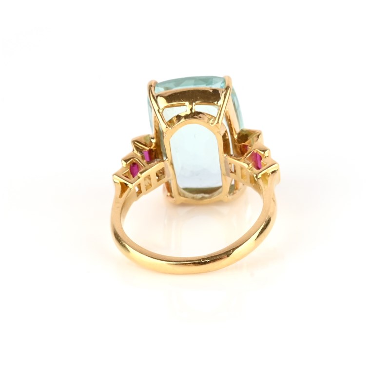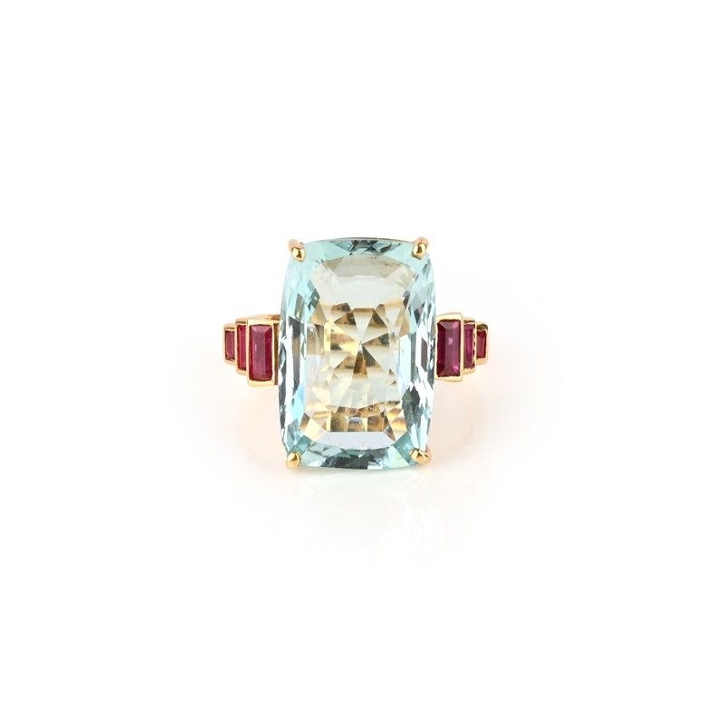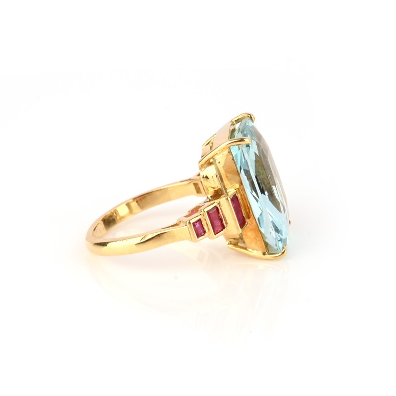 An aquamarine and ruby ring