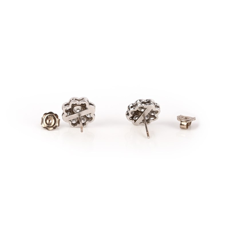 A pair of diamond cluster earrings, each designed as a floral cluster of brilliant-cut diamonds, mounted in white gold, diameter 1.2cm each