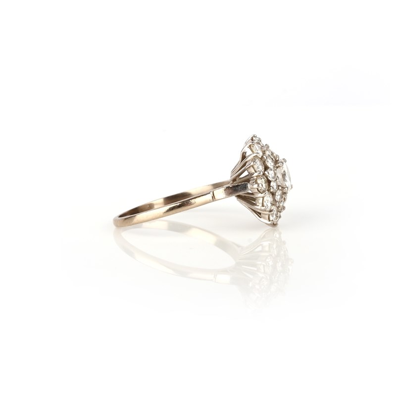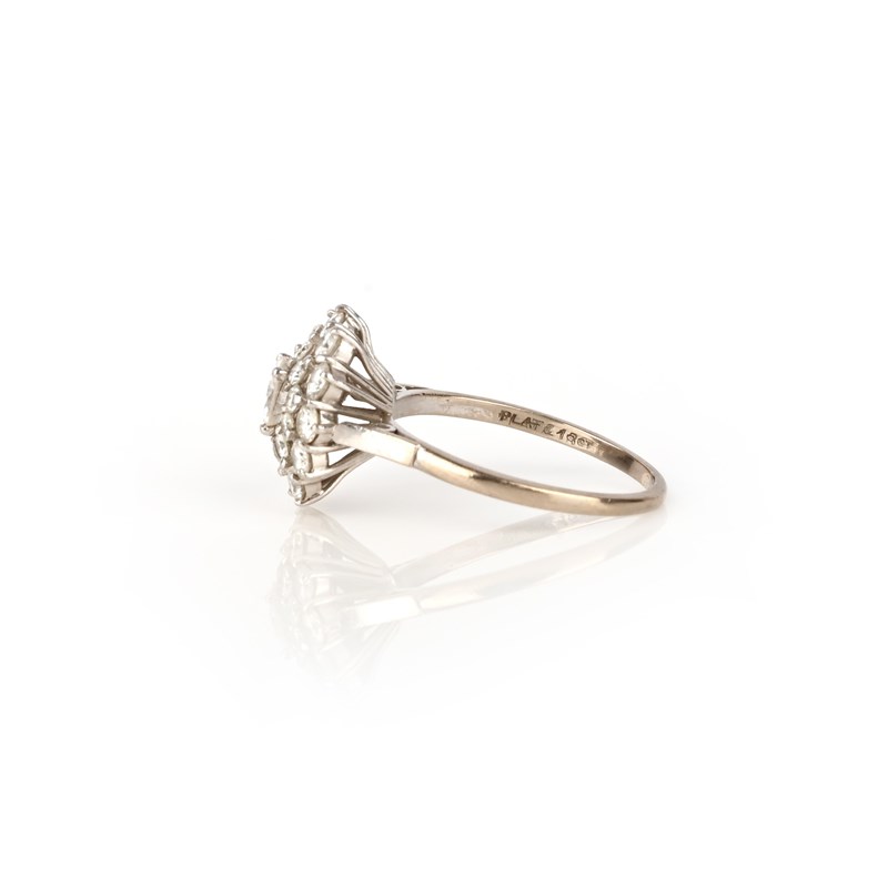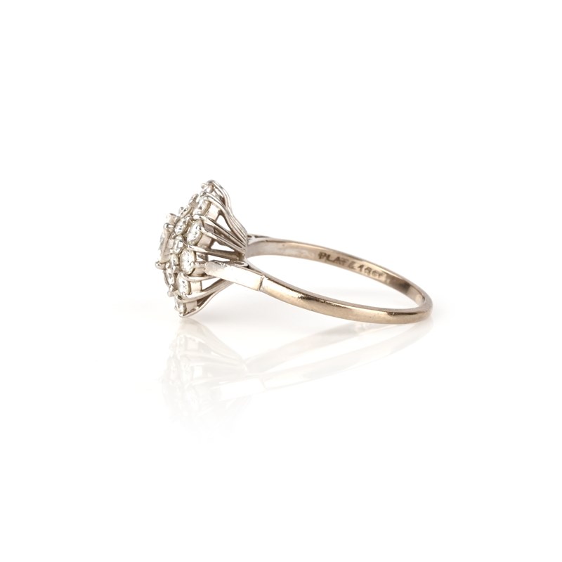 A diamond ring, of cluster design, set with brilliant-cut diamonds, mounted in white gold and platinum, size Q, stamped PLAT&18CT