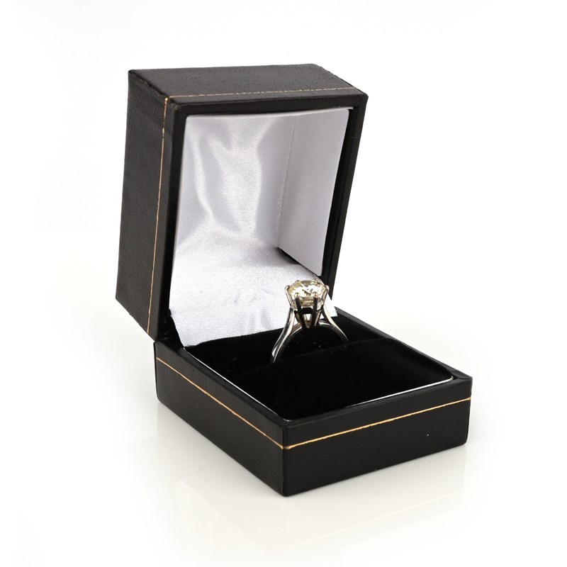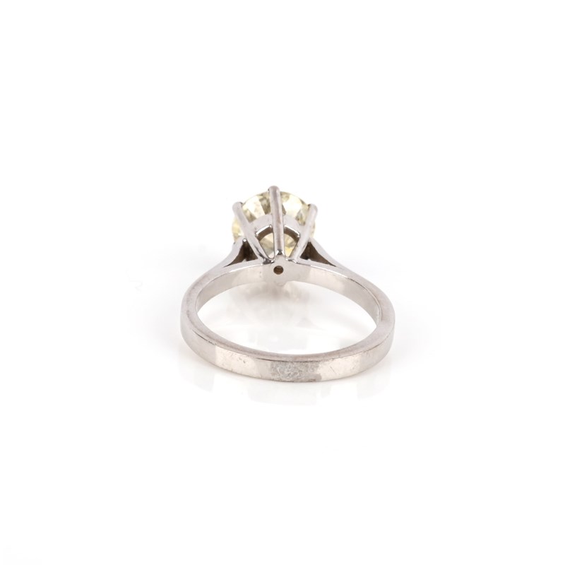 A diamond solitaire ring, claw-set with a brilliant-cut diamond weighing 1.65 carats, to a plain white gold shank, size L, stamped 18CT