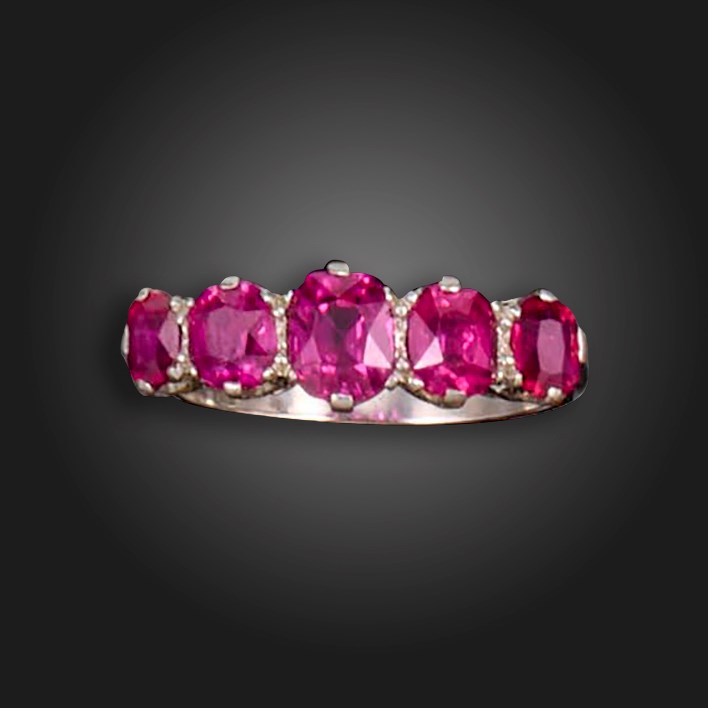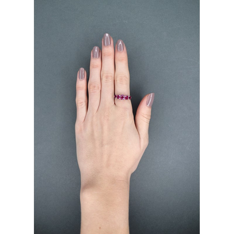 A ruby half-hoop ring, set with graduated cushion-shaped rubies in platinum, size M 1/2